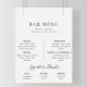Complemente seu evento de casamento clássico com este menu de bar de casamento minimalista e elegante.