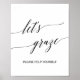 Este pôster de mesa de comida let's graze em caligrafia preta elegante é perfeito para um casamento simples. O design neutro apresenta um pôster minimalista decorado com tipografia romântica e caprichosa.