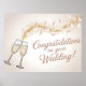 Uma imagem elegante e comemorativa com um belo design de cartas de saudação. Mostra duas flautas de champanhe, acompanhadas por uma corrente festiva de brilho do ouro e pétalas delicadas. O texto "Parabéns no seu casamento!" está escrito em um guião gracioso e fluente.
