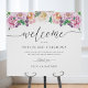 Bem-vindos aos seus convidados à sua cerimônia desconectada com este símbolo elegante. Design com detalhes caligráficos modernos escritos à mão e uma fina borda floral de cor d'água numa bela mistura de tons púrpura, lavanda, lilás, rosa, creme de pêssego e branco pastel. 10" x 8" é simplesmente o nosso tamanho predefinido, você tem a capacidade de escolher entre uma variedade de opções de tamanho. fácil de enquadrar ou colar/grampear para MDF para exibição. Parte da nossa coleção "Pastel Floral Alegre" e das nossas coleções "Purple and Pink Joyful Floral", ambas com uma variedade de produtos coordenadores disponíveis. Dimensões do sinal na foto de demonstração com suporte: 20" x 28"