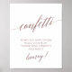 Este elegante sinal de confete de caligrafia rosa dourada é perfeito para um casamento simples. A design cor-de-rosa-pincelada apresenta uma poster minimalista decorada com tipografia de folha de ouro rosa-falso romântica e caprichosa. A placa diz: "confetti: quando os recém-casados andam pelo seu caminho, jogam algum confetti e gritam amanhã!". Nota: Este design não apresenta folha de ouro rosa real. É um gráfico de alta qualidade feito para se parecer com folha de ouro rosa.