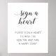 Este sinal elegante de coração apresenta um estilo iminalista preto-e-branco com uma mistura de escrita manual e fontes simples de bloqueio. Estas caixas de gotas de coração podem fazer um excelente alternativo para um livro de hóspedes tradicional. Parte da coleção Alejandra.