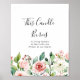 Este elegante sinal de velas finas florais é perfeito para um casamento moderno. O design apresenta rosas ilustradas cor-de-rosa, rosadas e brancas, peônias com folhagem verde agrupadas em buquês, acentuando as belas cores do outono.