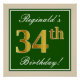 Póster Elegante, Verde, Faux Dourado 34º Aniversário + No