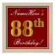 Póster Elegante, Vermelho, Faux Dourado 88º Aniversário;