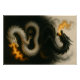 In this captivating piece, two serpentine dragons, one of obsidian shadow and the other of pristine light, coil in an intricate, symbiotic dance. They are a study in contrast, representing the powerful duality of existence. The dark dragon, with its menacing scales and piercing eyes, breathes a fierce, orange flame, while its luminous counterpart, serene and powerful, mirrors the fiery breath. Their bodies intertwine, a physical manifestation of a powerful convergence, a moment where opposing forces meet and create a singular, breathtaking entity. The backdrop is a swirl of smoky darkness and ethereal light, emphasizing the elemental clash and harmony at the heart of the artwork.