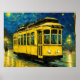 O elétrico amarelo de Budapeste sob a noite estrelada. Trabalho de arte fantasioso representando uma rua em uma cidade na Hungria no início dos anos 1900. Para aqueles que apreciam arte, Budapeste, inspiração Van Gogh, e posters artísticos. Esta trabalho de arte foi criada pela designer humana Alma Wad em colaboração com a Canva AI.