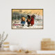 Decorre seu muro com um belo poster natal vintage com três crianças olhando para o trenó de Santas, pintado pela ilustradora e artista comercial norte-americana Ellen Hattie Clapsaddle.