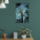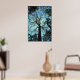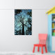 Este poster apresenta a vista da parte inferior de uma árvore de tulipas muito alta, olhando para cima. O céu azul crepúsculo cria um interessante efeito abstrato da herança de tronco e galhos silenciados. Esta árvore enorme vive no Parque Estadual Robert H. Treman, em Ithaca, Nova Iorque.
