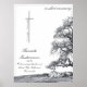 Este pôster comemorativo tem um design moderno e elegante com uma borda preta ao redor da frente. Em luto silencioso - árvore em um prado.