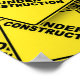 Uma coleção de signos em forma de diamante amarelo com impressão em preto que diz "em construção" faz um interessante padrão industrial ou de construção.