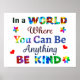 Citação inspiradora de "Em um MUNDO onde você pode ser qualquer coisa que seja gentil" para entender pessoas com distúrbio do espectro autista e encorajar a gentileza com eles.