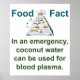 Todos nós amamos a comida. Revele seu fascínio por esse fato temático da comida: Em uma emergência, água de coco pode ser usada para plasma sanguíneo. Faz um presente excelente para comida.