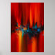 Uma cidade se inflama em silêncio. Ember Skyline captura o momento entre o crepúsculo e a detonação — onde listras verticais de carmesim e laranja derretido se erguem como chamas contra um pano de fundo de azul profundo. A metade inferior cintila com reflexos dispersos: turquesa, cobalto e faíscas de luz que sugerem janelas distantes, pulsos de neon ou memórias se dissolvendo na noite.