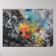 pintura de abstrato em muitas cores. Os azuis, amarelos e vermelhos dessa pintura imaginativa são colocados num fundo de preto, branco e cinzas. Esta pintura acrílica parece induzir sentimentos de felicidade e entusiasmo.