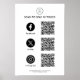 Poster de negócios de mídia social com o logotipo de sua empresa, códigos de QR para os clientes seguirem você em plataformas de mídia social e detalhes de contato.