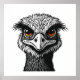 Emu bird head, Funny emu bird looking inquiringly black graphic sketch isolated on white background (Dromaius novaehollandiae)