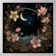 "Prados Lunares Encantados" é um poster cativante que combina maravilhas celestiais com flora caprichosa. Uma lua crescente luminosa pendura num céu estrelado, enquadrado por uma elegante e circular borda de folhas entrelaçadas e flores delicadas em pintas e cremes macios. Este design sonhador evoca um sentido de natureza mágica e charme pacífico à noite.