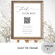 Bem-vindo aos seus convidados em estilo com este elegante sinal de código QR, projetado para vincular diretamente ao seu assento digital. Apresentando belos detalhes da caligrafia manuscrita moderna, é uma escolha na moda e prática para casais que querem uma maneira sem estresse para manter os detalhes dos assentos atualizados — mesmo no último minuto. Basta adicionar o endereço URL da página do plano de assentos, e o Zazzle gerará e colocará automaticamente seu código QR personalizado. Verifique a visualização para confirmar os links corretamente antes de fazer o pedido. O tamanho de 8" x 10" mostrado é apenas um exemplo, como você pode escolher entre uma variedade de tamanhos para melhor se adequar ao seu monitor. Impresso em papel de poster premium, é fácil enquadrar ou montar no MDF ou conselho de espuma. Se você preferir um conselho de espuma pronto para exibição, role até a seção "Transferir design para um produto" nesta página até encontrar "Conselhos de espuma". (Se ele for transferido primeiro para um tamanho maior, você poderá redimensioná-lo facilmente na página do produto e visualizar como ele será em um suporte.) Por favor note que enquanto o carrinho pode listar o verso como "vazio", não se preocupe com isso; o verso será branco. Parte da nossa coleção "Modern Elegant Wedding & Event Signage", esta design pode ser combinada com peças de coordenação para um olhar elegante e coeso. Se você precisar de ajuda, me envie uma mensagem... Eu ficarei feliz em ajudar. Dimensões do sinal na foto de demonstração com suporte: 18" x 24"