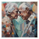 Essa peça geométrica representa um casal idoso em um momento tenso, com triângulos coloridos em tons suaves e vibrantes. As formas entrelaçadas simbolizam uma união duradoura, enquanto as cores misturadas refletem a profundidade de suas emoções e a beleza de uma vida compartilhada.
