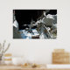 Uma lente de olho-de-peixe ligada a uma câmera estática eletrônica foi usada para capturar esta imagem do astronauta da NASA Michael Fincke (centro superior) durante a quarta sessão de atividade extravagular (EVA) da missão, à medida que a construção e manutenção continuavam na Estação Espacial Internacional. Durante as 7 horas, 24 minutos de espaçamento, Fincke e astronauta, Greg Chamitoff (fora do quadro), ambos especialistas em missão STS-134, completaram os objetivos principais para a espaçonave, incluindo a arrumação da explosão de 50 pés de comprimento e a adição de uma instalação de energia e dados para a tornar na Montagem Enhanced International Space Station Boom, disponível para estender a do braço robótico da estação espacial. O Endeavor do ônibus espacial encaixado é visível à esquerda. A escuridão do espaço e o horizonte da Terra fornecem o pano de fundo para a cena.