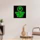 O slogan "Safe Green Nuclear Power" escrito em uma fonte original, em negrito e angustiada, em estilo de manchete, junto com um símbolo de veneno estênciado igualmente angustiado. Você não pode matar ironia.