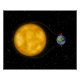A Terra sendo recarregada pelo Sol usando cabos de jumper para se conectar aos polos da Terra, vermelho no topo, preto no fundo.