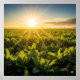 Um gráfico de alta qualidade de uma pintura que retrata o sol como uma força de energia e crescimento. Sua luz é intensa e intensa, irradiando para um campo de lavouras, culturas verdes, destacando as plantas e enfatizando sua cor saudável e vibrante.