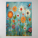 Abstrato selvagem de flores coloridas, Poster botânico de viveiro. Único, bonito, na moda design.