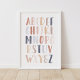 Apresente o seu filho ao ABC com este poster de aquarela com letra manual. Decorra uma parede no berçário, no quarto ou na sala de jogos da sua criança com este impressão educacional para encorajar a aprendizagem todos os dias.