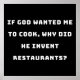 Se Deus queria que eu cozinhasse, por que ele inventou restaurantes?: Uma design de citação de Cozinhar engraçada. É perfeito para quem não gosta de cozinhar. Por que não pegar essa design para você ou como presente de aniversário ou de Natal para seu melhor amigo, esposa, parente, namorado, esposa?