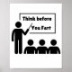 Pense antes de peidar poster de parede engraçada para qualquer um que goste de piadas peidadas