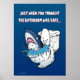 Quando pensaste que o banheiro estava seguro.... Aí vem a poster perfeita para alimentar seus receios já paranoicos sobre SHARKS! Um desenho animado de um tubarão branco excelente saindo do banheiro!