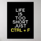 A vida é muito curta, apenas Ctrl + F. cobrir de aspas engraçado inspirado pela tecla Control e pelo botão F na pesquisa do teclado.