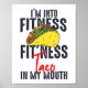 Esta engraçada design de exercícios de ginástica diz "eu gosto do taco da ajustado da malhação na minha boca". A design apresenta um taco.