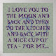 Uma design engraçada baseada em corações e texto, destinada a um casal gay. O poster é coberto por corações esboçados coloridos azuis, e um conjunto maior de dois corações azuis está centrado. Um texto massivo é escrito em letra lúdica: "EU TE AMO PARA A LUA E VOLTAR E DEPOIS PARA A COZINHA E VOLTAR COM UM BOM CHÁ - PARA MIM...". Uma bonito citação doce e engraçada que pode ser facilmente personalizada. Substitua "chá" por "café" se for sua... xícara de chá. A cor de fundo azul sólida também pode ser ajustada. Observe que se você escolher um fundo mais escuro, o texto poderá precisar de uma cor de fonte mais leve.