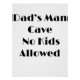 Dê ao Homem Caverna do Pai o perfeito toque final com esta engraçada poster de 'Caverna do Homem do Pai - Sem Crianças Permitidas'. Ideal para a sua garagem, bar, sala de jogos ou escritório doméstico, esta ousada e humorada arte em muros é uma forma excelente de o Pai marcar o seu território. Impresso em material de alta qualidade com cores vibrantes, este poster é o presente perfeito para o Dia do Pai, aniversários ou qualquer pai que precise do seu próprio espaço!