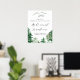 Ponha o tom para o seu casamento em floresta com o nosso espantoso e personalizável sinal de boas-vindas! Ele apresenta design de floresta aquática e roteiro moderno. Personalize esta placa de almoço de ensaio da floresta adicionando os detalhes do seu evento. Perfeito para casamentos com temas florestais, casamentos no inverno e casamentos ao ar livre. Disponível em vários tamanhos para ajustado do seu local, seja uma reunião íntima ou um evento maior. Itens correspondentes estão disponíveis.