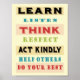 poster de sala de excelente para a escola. Promove valores que podem ser praticados por todos. Vintage com diferentes tipos de tipografia. Leituras de texto: Aprenda, Escute, Pense, Respeite, aja gentilmente, ajude outros e faça o seu melhor. Também faz com que uma boa família valorize poster para exibir em casa, no quarto das crianças, na área de estudo ou no espaço de escritório.