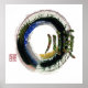O personagem Kanji para "Gentileza" é apresentado nesta pintura de tinta de estilo japonês Sumi-e a cores. [blues, gold, tons cor-de-rosa] O Enso é um dos símbolos mais profundos do Zen Japonês: Enso representa o vazio, o Tao, a existência infinita e simples, a impermanência, o vazio, a iluminação e a perda do eu.