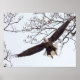 Uma magnífica águia careca com asas totalmente abertas ao lançar-se de um galho de árvore.