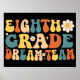 Retrô Groovy 8ª série da equipe de sonho, professor engraçado e professor estudante para crianças, meninas, meninos, mulheres e homens. Incrível correspondência de volta à escola para professores e estudantes do 8º ano do 8º ano. Bela camisa para começar seu 8º ano escolar. Professora e estudante de uma equipe de sonho divertida, que combinam com a roupa... Excelente 8.º ano de apreciação presente para pai, mãe, filho, filha, amiga, colega de trabalho, irmã, irmão, estudante e professor. Pegue-o de volta à escola, primeiro dia de escola, 100 dias de escola.