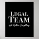 Precisão. Proteção. Parágrafos marcados em vermelho. Esta poster ousada e espirituosa celebra a Equipe Legal — a força meticulosa por trás de contratos, conformidade e sanidade corporativa. Perfeito para advogados, assessores jurídicos, oficiais de conformidade ou qualquer pessoa que vive em mudanças controladas. Um pedaço afiado de arte de parede para firmas de advocacia, departamentos jurídicos ou espaços de escritórios que valorizam detalhes.