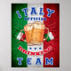 Equipe Oficial do Bebendo da Itália. Poster de cerveja engraçada com citação engraçada de cerveja e bandeira italiana, estilo retrô, poster de cerveja vintage. Vintage poster italiano com bandeira de Itália, cores e cerveja dizendo.