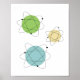 Este incrível pôster moderno de meados do século apresenta 3 formas atômicas nas cores azul aqua, verde, amarelo e preto. Isso torna uma adição fabulosa para a sua sala de estar funky.
