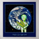 PEAS ON EARTH! é uma design de trabalho de arte com um capricho que apresenta uma alienígena do espaço exterior com ervilhas que nos oferecem! Isso faz um poster de crianças encantador!