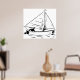 Uma ilustração de esboço de veleiro na água. Este design parece realmente eficaz nestes cartazes
