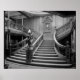 Esta foto do início do século 20 da História Britânica mostra a segunda aterrissagem da Grande Escada agarrando a Olimpiadas, que foi a primeira das Estrelas Brancas. Semelhante à seção de primeira classe do Titanic, o andar A de dois andares de altura desta espessa escada de Oak Inglês foi desenhado de uma forma que permitia à luz natural entrar na escada durante o dia.