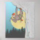 Uma ilustração engraçada de uma escalada de preguiça, essa preguiça bonita está vestindo um arnês de escalada e está prestes a lentamente cortar um pino em uma rota de escalada esportiva.