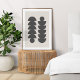 Um abstrato minimalista moderno com um escandinavo design geométrico "scandi" a preto sobre uma cinza natural quente e macia. O acessório perfeito para uma casa moderna.